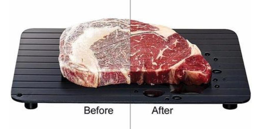 ¡El tiempo! DESCONGELA TODOS LOS ALIMENTOS CONGELADOS DE FORMA RÁPIDA Y NATURAL: ¡La bandeja de descongelación Miracle te permite descongelar alimentos congelados hasta 10 veces más rápido que a temperatura ambiente!